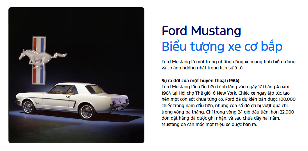 | Cảm nhận khả năng tăng tốc tức thì của Mustang Mach-E, nhờ vào 4 động cơ điện, mang tới công suất tối đa 395PS và mô men xoắn 627Nm mô men xoắn. | Tự tin cầm lái chiếc Mustang Mach-E trên những cung đường dài và tận hưởng những hành trình đầy hứng khởi. |