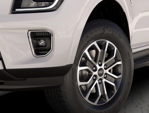 | Một thanh đơn nằm ngang chắc chắn tạo nên dáng vẻ hầm hố cho phiên bản Ambiente. Điểm nhấn cho tấm lưới tản nhiệt thiết kế mới chính là cụm đèn LED hình chữ C, mang phong đặc trưng của ‘Built Ford Tough’. | Mâm xe hợp kim 18 inch màu đen bạc ánh kim làm tôn lên vẻ tự tin và chắc chắn cho Everest Ambiente. |