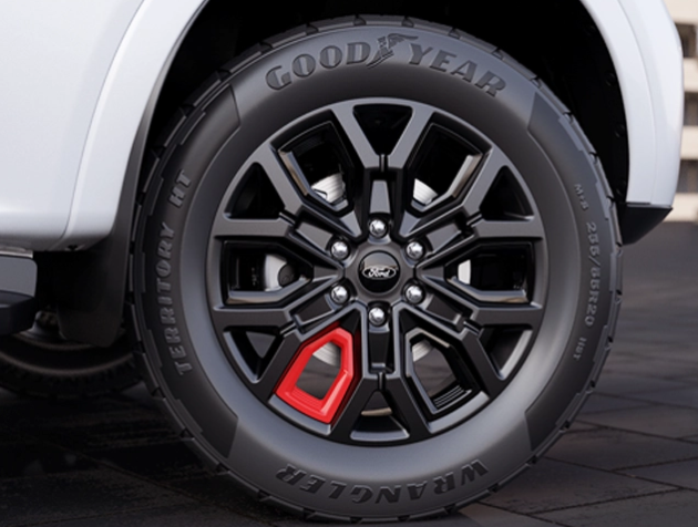 Ấn tượng với gam màu đen trên nền ngoại thất trắng thể thao, mạnh mẽ. Bộ vành hợp kim 20 inch đen tuyền với điểm nhấn màu đỏ giúp nổi bật phong cách thể thao, cá tính của chủ sở hữu.