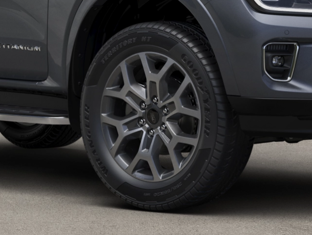 Phần đầu xe Everest Titanium đặc biệt nổi bật với lưới tản nhiệt dạng lưới mạ crôm kết hợp cùng cụm đèn LED hình chữ C mang đậm đặc trưng thiết kế toàn cầu của Ford. Các điểm nhấn mạ crôm trên gương, tay nắm cửa, bậc lên xuống hai bên xe tạo nên vẻ cứng cáp nhưng vẫn vô cùng sang trọng cho chiếc xe. Mâm xe hợp kim lớn 20 inch đa chấu đươc hoàn thiện tỉ mỉ, tôn thêm vẻ bề thế, cơ bắp và linh hoạt cho Titanium. Các điểm nhấn mạ chrôm trên tấm chắn bùn giúp gắn kết bánh xe với phần thân trên.